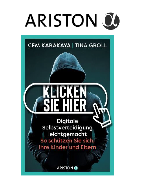 Gemeinsam mit dem Cybercrime-Experten und früheren Interpol-Mitarbeiter Cem Karakaya habe ich ein aktuelles Buch über neue Phänomene der Internetkriminalität veröffentlicht: „Klicken Sie hier: Digitale Selbstverteidigung leicht gemacht. So schützen Sie sich, Ihre Kinder und Eltern“ (Ariston, 2024). Wir zeigen, wie Familien sich praktisch schützen – von Enkeltrick bis Cybergrooming, von Geräteeinstellungen bis Social-Media-Risiken – mit klaren, einfach umsetzbaren Schritten. Das Buch steht auf der SPIEGEL-Bestsellerliste. Mehr Infos und Leseprobe: Penguin Random House.